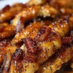 Savory bacon-wrapped chicken tenders coated in a sweet brown sugar glaze, perfect for family dinners or appetizers.