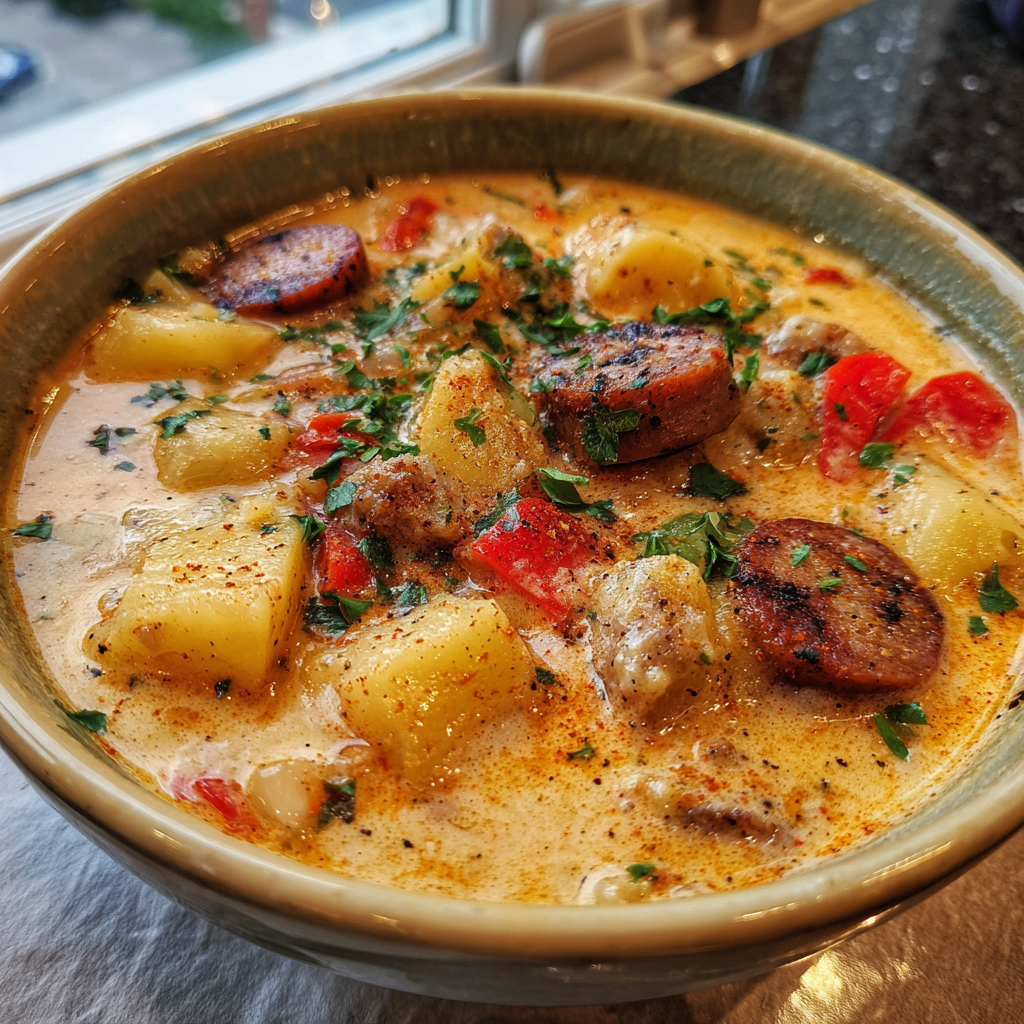 - Healthier (lighter but still creamy): Use turkey sausage, swap cream for milk, and thicken by blending 1 cup of potatoes instead of using flour.