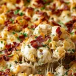 A creamy, cheesy noodle bake studded with shredded chicken and crisp bacon, perfect for weeknight dinners and potlucks.