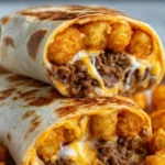 Cheesy Potato Burritos blend crunchy tater tots, seasoned ground beef, and melty cheese for a comforting, hearty meal.