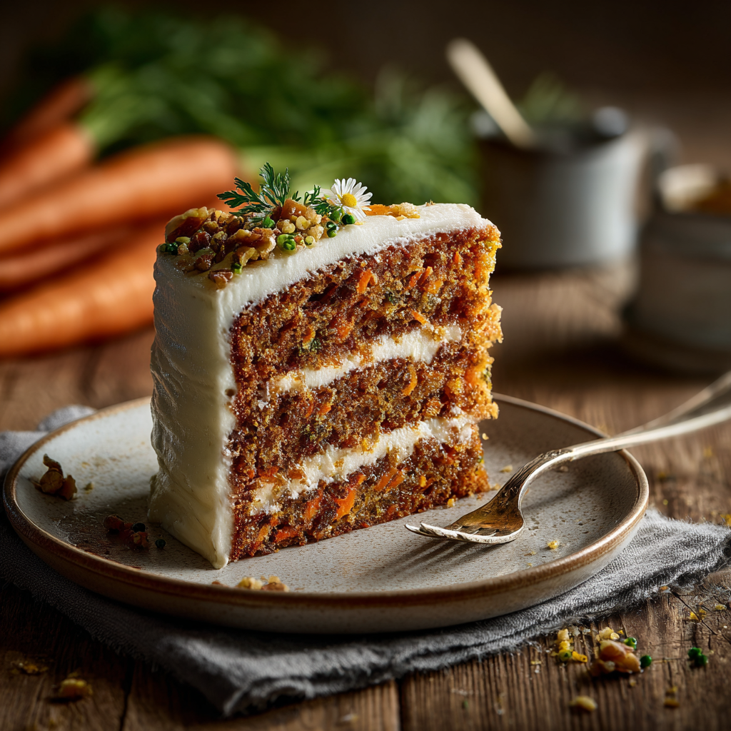 - Finished cake: slices cleanly after chilling, with a moist crumb and visible carrot strands