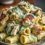 - Combine: Return the cooked chicken and drained pasta to the skillet. Add spinach if desired and toss until everything is coated in the creamy sauce.