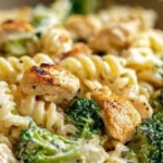 I still make this pasta when I need dinner to feel like a hug — fast, cheesy, and built from rotisserie shortcuts. It combines shredded rotisserie chicken, tender broccoli, and a silky Parmesan-mozzarella sauce tossed with al dente penne. If you want the original page with photos and notes while you cook, check the Creamy Rotisserie Chicken Broccoli Pasta recipe for reference.