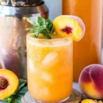 A delightful homemade lemonade infused with the flavors of ripe peaches, perfect for summer gatherings.