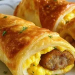 Delicious breakfast roll-ups made with flaky crescent dough, scrambled eggs, and crumbled sausage, perfect for busy mornings or weekend brunches.